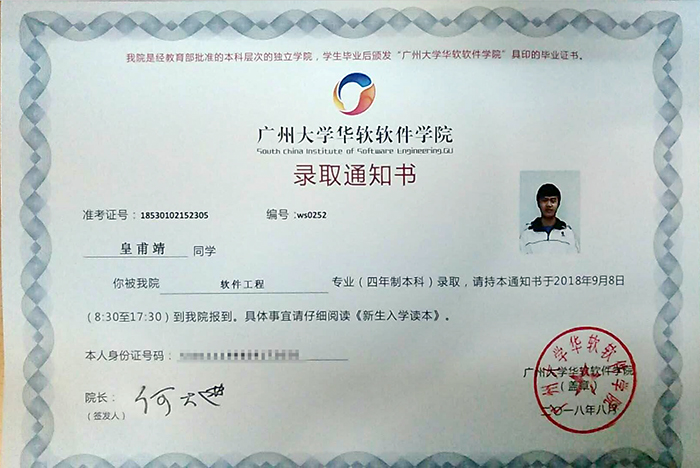 ——記好孩子學(xué)校優(yōu)秀畢業(yè)生黃甫靖被廣州大學(xué)錄取