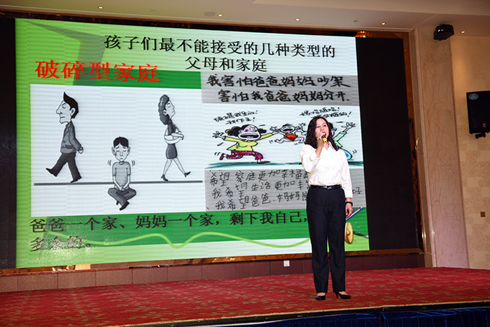 周老師本次培訓(xùn)的主題是《父母執(zhí)照—成為合格的父母》。父母作為孩子的人生啟蒙者,所擔(dān)負(fù)的教育意義不言而喻,而孩子的每個(gè)成長(zhǎng)階段都需要家長(zhǎng)積極地介入和引導(dǎo)。周老師引用了社會(huì)學(xué)家埃里克森著名的“成長(zhǎng)需要”理論闡述了孩子最重要的五個(gè)成長(zhǎng)階段,如果孩子沒有在某個(gè)階段充分成長(zhǎng),那么孩子將來的生活中就會(huì)感到困擾甚至是無能為力。如果孩子在每一階段都得到肯定和滿足,孩子的感受都能得到理解,孩子就會(huì)成為一個(gè)身心健康、接受自己的人。反之,孩子會(huì)形成反叛個(gè)性,成為人們眼中“最難教育的孩子”。周老師用通俗易懂的語言和形象生動(dòng)的圖片向家長(zhǎng)們呈現(xiàn)了一幕幕家庭教育案例,引導(dǎo)家長(zhǎng)正確識(shí)別和認(rèn)知家庭教育的缺失和偏頗,讓家長(zhǎng)們領(lǐng)悟正確的教育方式是孩子健康成長(zhǎng)的決定性因素。好父母是學(xué)出來的、好孩子是教出來的、好習(xí)慣是養(yǎng)出來的、好溝通是聽出來的,和孩子建立和諧的親子關(guān)系,是靠平時(shí)在生活中一點(diǎn)一滴的累積,而不是一蹴而就的。沒有天生成功的父母,也沒有不需要學(xué)習(xí)的父母。雖然做父母的確不需要考個(gè)執(zhí)照,但是,如果不學(xué)習(xí),就不可能成為一個(gè)合格的父母!周老師用感人肺腑的語言,朗讀了孩子寫給家長(zhǎng)的信,深深感動(dòng)了在場(chǎng)的家長(zhǎng)們,多次熱烈的掌聲和感同身受留下的淚水把培訓(xùn)會(huì)氣氛推到了一個(gè)高點(diǎn)。