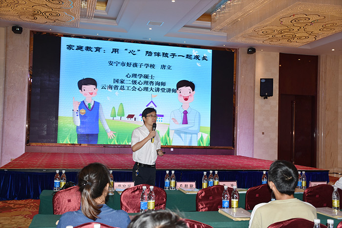 本次家長(zhǎng)培訓(xùn)會(huì)學(xué)校派出了學(xué)校副校長(zhǎng)、國(guó)家二級(jí)心理咨詢師周榕樺老師和學(xué)校心理學(xué)碩士、國(guó)家二級(jí)心理咨詢師、云南省總工會(huì)心理大講堂講師唐立向參加培訓(xùn)的家長(zhǎng)們進(jìn)行現(xiàn)場(chǎng)授課。