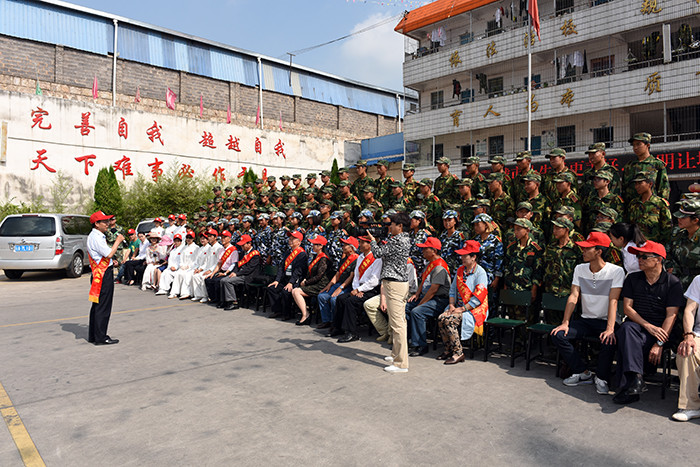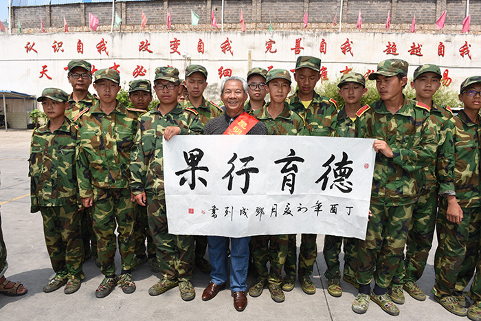 在隨后的合影過程中,趙久詩主任、王永麗書記、李庭貴主任分別作了講話。趙主任指出:關(guān)工委是黨和政府教育青少年的參謀和助手,是聯(lián)系青少年的橋梁和紐帶;學(xué)校要堅(jiān)持不懈地以社會(huì)主義核心價(jià)值觀體系教育、引領(lǐng)青少年,為培養(yǎng)合格的社會(huì)主義建設(shè)者和接班人做出應(yīng)有貢獻(xiàn);孩子們要珍惜這里的時(shí)光,修身養(yǎng)性,把最好的自己帶回家庭、學(xué)校和社會(huì)。由于趙主任是部隊(duì)出身,講到動(dòng)情處,趙主任還情不自禁地向同學(xué)們下了“稍息”“立正”“向右看齊”“向前看”的口令,并向同學(xué)們敬禮,大家都非常感動(dòng)。合影之后,領(lǐng)導(dǎo)們還為孩子們分發(fā)了創(chuàng)建全國科普示范市專用記錄本。