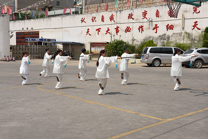 活動(dòng)并未因此落下帷幕,而是進(jìn)入了一場視覺和聽覺的盛宴。安寧老科協(xié)藝術(shù)團(tuán)林峰樂隊(duì)的一首《感恩的心》把文藝表演拉開序幕,緊接著由安寧太極拳協(xié)會(huì)選送的《中國功夫扇》《太極劍》,孩子們更是看得津津有味。只見表演者動(dòng)作時(shí)而輕柔舒緩、時(shí)而剛?cè)嵯酀?jì),一招一式,融入了五千年的中華文明;舉手投足,展示著中國太極功夫以柔克剛、虛實(shí)分明、輕靈沉穩(wěn)的意境。隨后由趙云玲老師帶來的民族獨(dú)舞《歡樂的跳吧》,讓操場的氣氛更加火熱起來,大家跟著節(jié)拍,扭動(dòng)著身子,沉浸在歡樂的海洋中。
