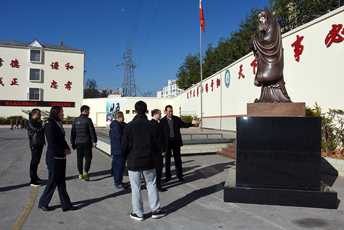阿四•官鑫主席一行首先參觀了我校辦公樓、食堂、心理輔導室、學生宿舍、孔子雕像、監(jiān)控設(shè)備等校園環(huán)境,隨后觀看了學校教學活動短片。期間,魯校長簡要介紹了學校的發(fā)展歷程、辦學理念、辦學特色、辦學成果等。