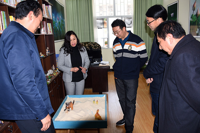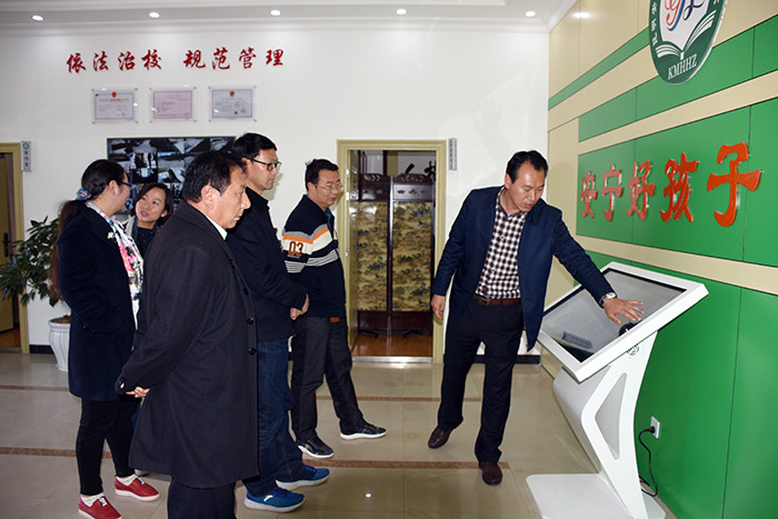 毛局長一行在的陪同下,依次參觀了學(xué)校辦公樓、監(jiān)控安防設(shè)備、食堂餐廳、學(xué)生宿舍、心理輔導(dǎo)室等,還特地查閱了學(xué)校心理輔導(dǎo)工作記錄情況,并與心理輔導(dǎo)老師們進行了工作交流;隨后,在多媒體教室觀看了教學(xué)活動短片。