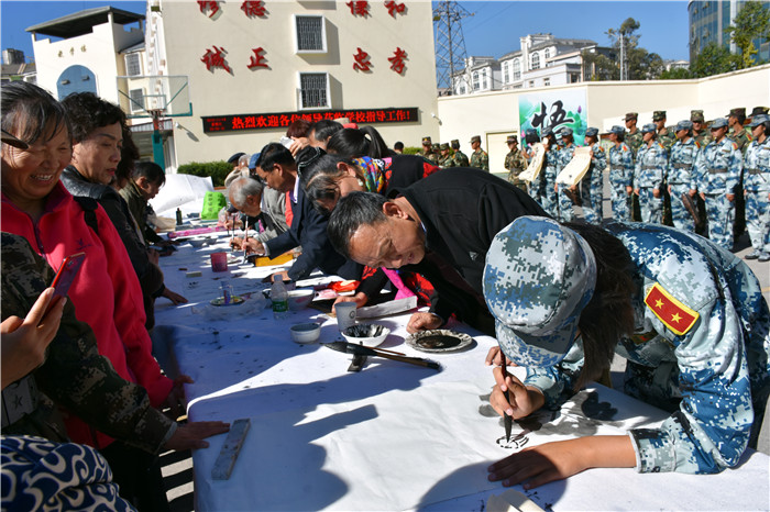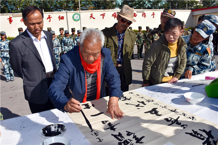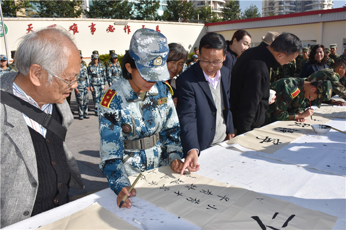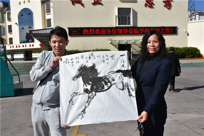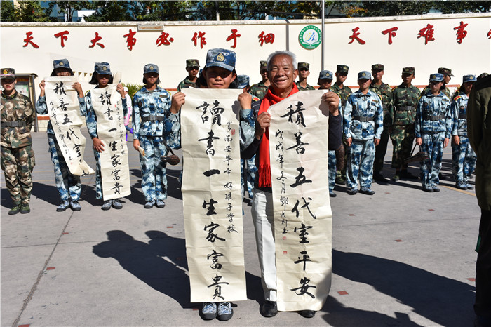 老領(lǐng)導(dǎo)們?cè)谥笇?dǎo)孩子們書(shū)法的同時(shí),還不時(shí)走到孩子們中間去,噓寒問(wèn)暖。當(dāng)和學(xué)校可愛(ài)的“小不點(diǎn)”聊天時(shí),孩子的堅(jiān)韌懂事,讓領(lǐng)導(dǎo)們很是欣慰。
