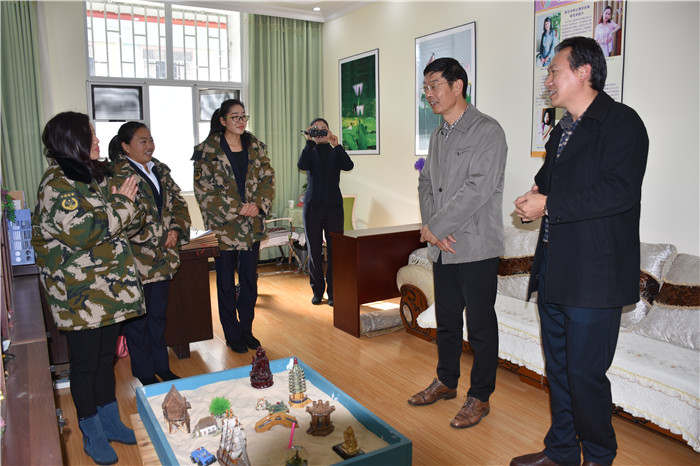 本次調研,學校長、副校長周榕樺、毛積敏、校長助理李新紅、政教主任楊玉峰、總務主任李月、心理教研組組長周雪等校領導陪同。