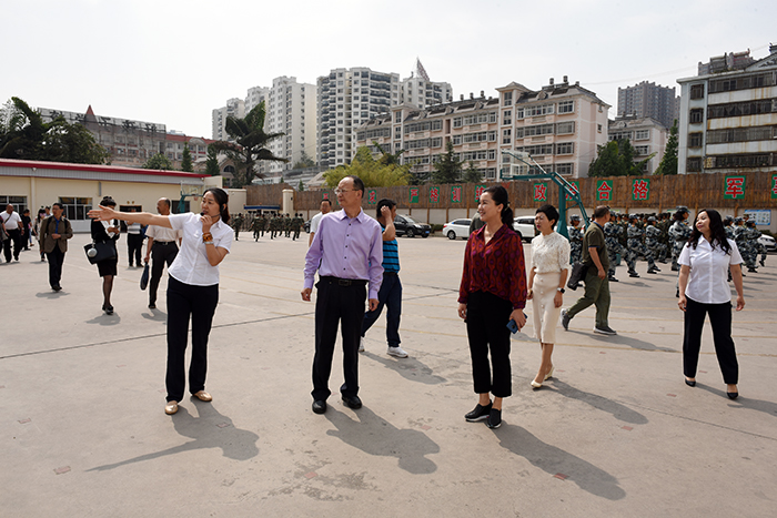 本次調研,學校副校長周榕樺、校長助理李新紅、行政辦公室主任單官昱、總務主任李月、辦公室副主任繆珊珊、副總教官王濤、教研副組長王清恒等校領導陪同。
