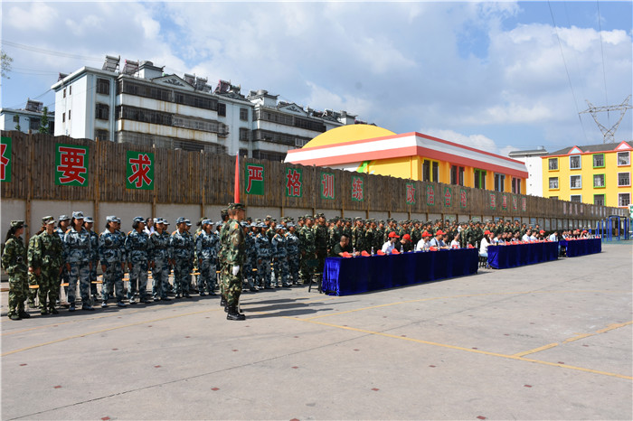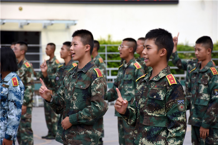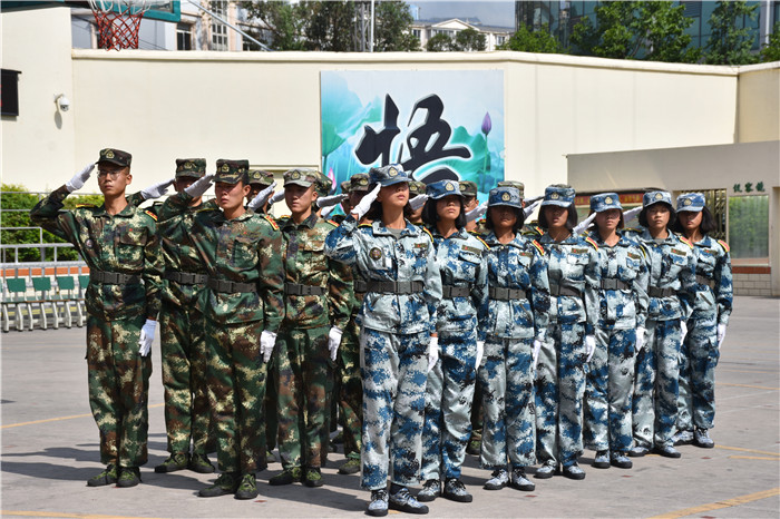 參觀結(jié)束,全體人員在操場集合。國旗手英姿颯爽、精神抖擻地入場,進(jìn)行了莊嚴(yán)的升國旗儀式,師生們軍容嚴(yán)整,行著標(biāo)準(zhǔn)的軍禮注視著五星紅旗冉冉升起。隨后,軍事匯報表演在迎校旗中拉開序幕。