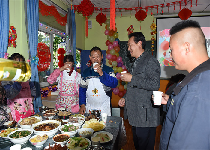 席間,魯校長(zhǎng)還到孩子們身邊敬酒。孩子們看到校領(lǐng)導(dǎo)和老師們陪著自己過年,還親切關(guān)懷、噓寒問暖,心里的暖流滿溢。整個(gè)現(xiàn)場(chǎng),其樂融融,充滿著喜慶祥和的氣氛。