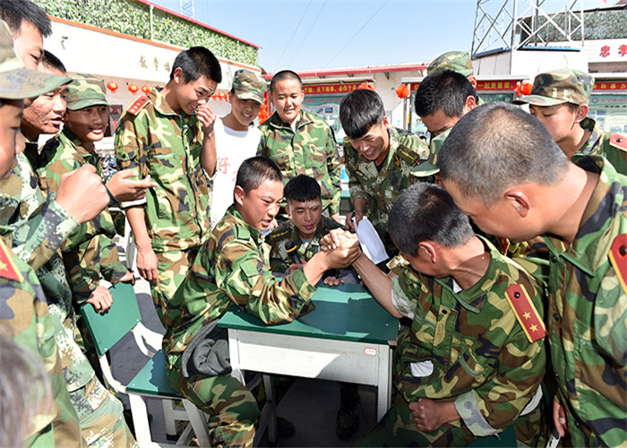 下午,首先進行的是大力士——扳手勁比賽。同學(xué)們早早就在操場上擺好桌椅等待比賽,隨著一聲哨響,比賽正式開始了。同學(xué)們摩拳擦掌地坐到了指定位置,開始“戰(zhàn)斗”起來,每位選手都緊緊地握住對方的手,卯足了勁往自己這邊扳。有的由于力量懸殊,很快敗下陣來;有的趁對方不備,猛往自己懷中一壓,還沒等對方反應(yīng)過來,手已經(jīng)被壓在桌上了;有的相持不下,鼓著腮、瞪著眼,臉漲得像個紅蘋果;有的不甘示弱,拼命想把對方的手壓下去,無奈還是沒有還手之力。場上的啦啦隊員,有的在揮手喊加油,有的急得直跺腳,有的不停地說道“不行,不行,他太強了!”操場上可謂是一番熱鬧至極的景象。