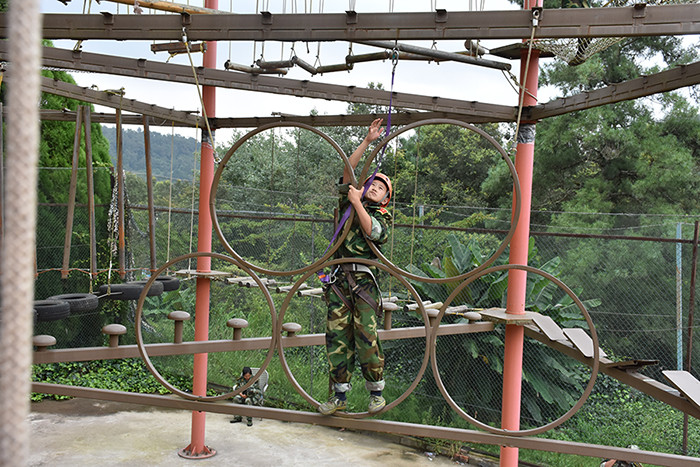 在輕松愉快的熱身活動(dòng)后,孩子們熱情高漲、氣氛熱烈,積極參與挑戰(zhàn)了天使之手、凌空飛躍、探險(xiǎn)樂(lè)園等30余個(gè)項(xiàng)目。在完成挑戰(zhàn)的過(guò)程中,孩子們團(tuán)結(jié)互助,相互激勵(lì)、鼓勁,發(fā)揚(yáng)了不怕苦、不怕累的精神,以不斷挑戰(zhàn)自我的勇氣,克服了心理恐懼、突破了心理障礙,用心感悟了“合作的必須”、“信任的可貴”、“堅(jiān)持的重要”等。那些平時(shí)理解起來(lái)比較深?yuàn)W的道理在體驗(yàn)中得到“頓悟”,那些一直困擾的情緒在游戲中愉快“化解”,孩子們?cè)诨顒?dòng)中都成了理論者、實(shí)踐者、反思者。值得驕傲的是,全體隊(duì)員,不論男女,無(wú)一掉隊(duì),全部完成了預(yù)期的挑戰(zhàn)項(xiàng)目,領(lǐng)略了“一覽眾山小” 的壯麗景象。