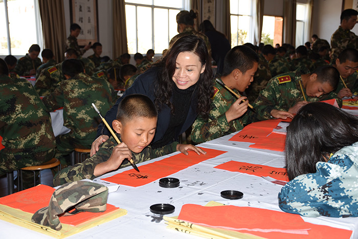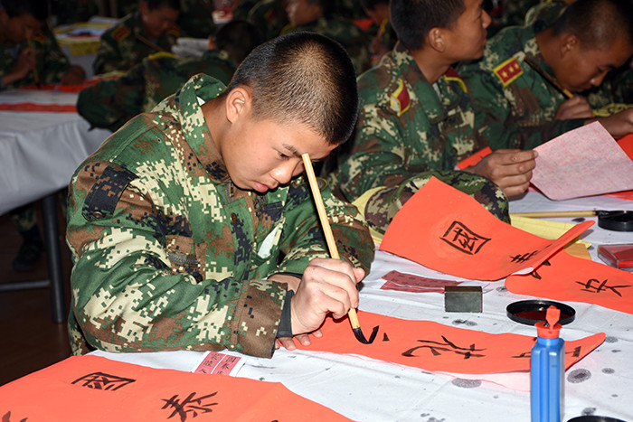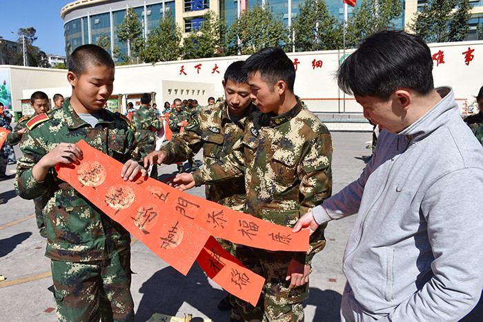 當(dāng)書法老師韋昌毅把春聯(lián)準(zhǔn)備好,宣布活動(dòng)正式開始時(shí),孩子們一個(gè)個(gè)躍躍欲試,準(zhǔn)備大顯身手。