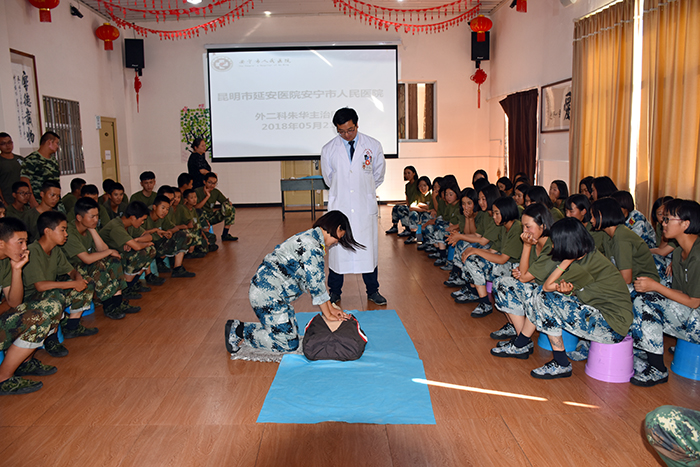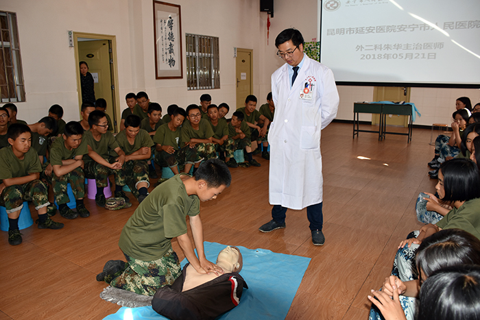2018年5月21日下午,為全面提高全校學(xué)生對(duì)突發(fā)事故的科學(xué)、緊急救護(hù)能力,我校特邀請(qǐng)昆明市延安醫(yī)院安寧市人民醫(yī)院外二科主治醫(yī)師朱華、陸峻,護(hù)士胡亞瓊等專業(yè)醫(yī)護(hù)人員到校為孩子們開(kāi)展應(yīng)急救護(hù)培訓(xùn)。