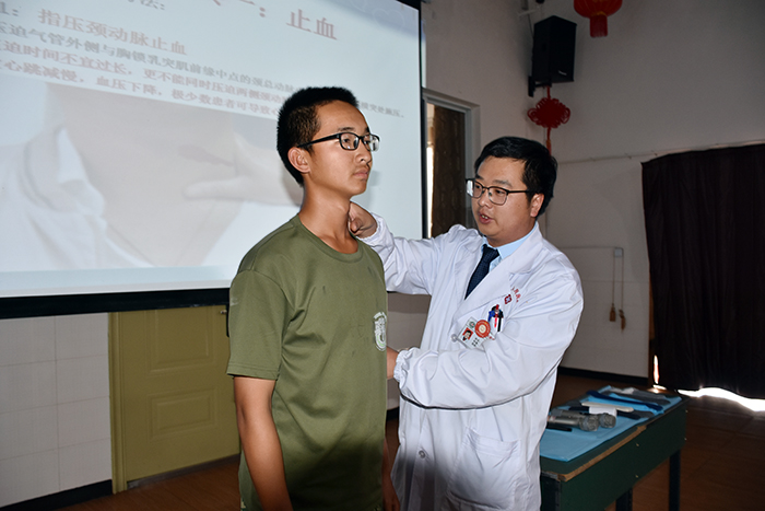 本次培訓(xùn),朱醫(yī)生用通俗易懂的語(yǔ)言,從日漸增多的意外傷害入題,對(duì)現(xiàn)實(shí)生活中遇到的異物梗阻、溺水防護(hù)、觸電防護(hù)等突發(fā)事件應(yīng)采取的有效救護(hù)措施。并著重講解了心肺復(fù)蘇的動(dòng)作要領(lǐng),孩子們興趣高漲,朱醫(yī)生讓孩子們對(duì)現(xiàn)場(chǎng)假人進(jìn)行模擬演練,并逐一指導(dǎo),每人都要過(guò)關(guān)才行。每做完一周期的心臟按壓,孩子們都覺(jué)得特別累,更深深地體會(huì)到了醫(yī)護(hù)人員的不易。隨后,朱醫(yī)生還對(duì)創(chuàng)傷救護(hù)的止血、包扎、固定、搬運(yùn)也作了解說(shuō)與演示,指出了平常生活中的應(yīng)急誤區(qū)。
