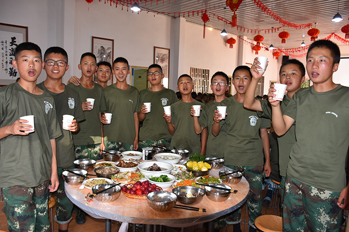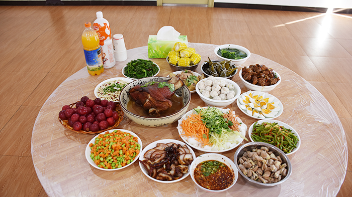 傍晚,一桌桌色香味美的飯菜全部就緒,粽子也蒸熟了,同學(xué)們興高采烈地一盤一盤端上桌,大家圍坐在一起,看著自己的勞動(dòng)果實(shí)說著、笑著!過一會(huì)兒,魯植校長發(fā)表了節(jié)日祝賀和熱情洋溢的講話:“今天的端午不一樣,希望孩子們?cè)跊]有家人陪伴的節(jié)日里,能夠更深刻地認(rèn)識(shí)到親人的重要性;在沒有踏青旅游的節(jié)日里,能夠用足夠的時(shí)間改變自己,在學(xué)校完成學(xué)習(xí)目標(biāo),追求自己的人生理想……”聽到校長的祝愿,同學(xué)們掌聲不斷。開席后,孩子們吃著豐盛的晚餐、品嘗著獨(dú)特香味的粽子,不時(shí)向老師道祝福,和同學(xué)相共勉。在攝像機(jī)的鏡頭下,孩子們還爭先恐后地向遠(yuǎn)方的爸媽送祝福,希望他們端午安康!