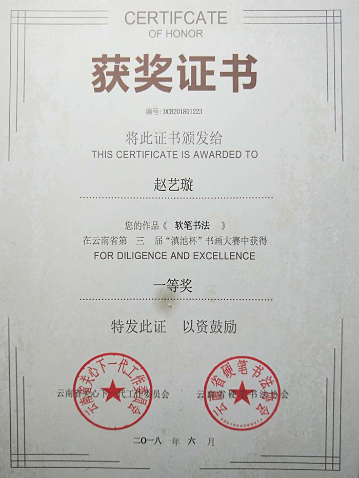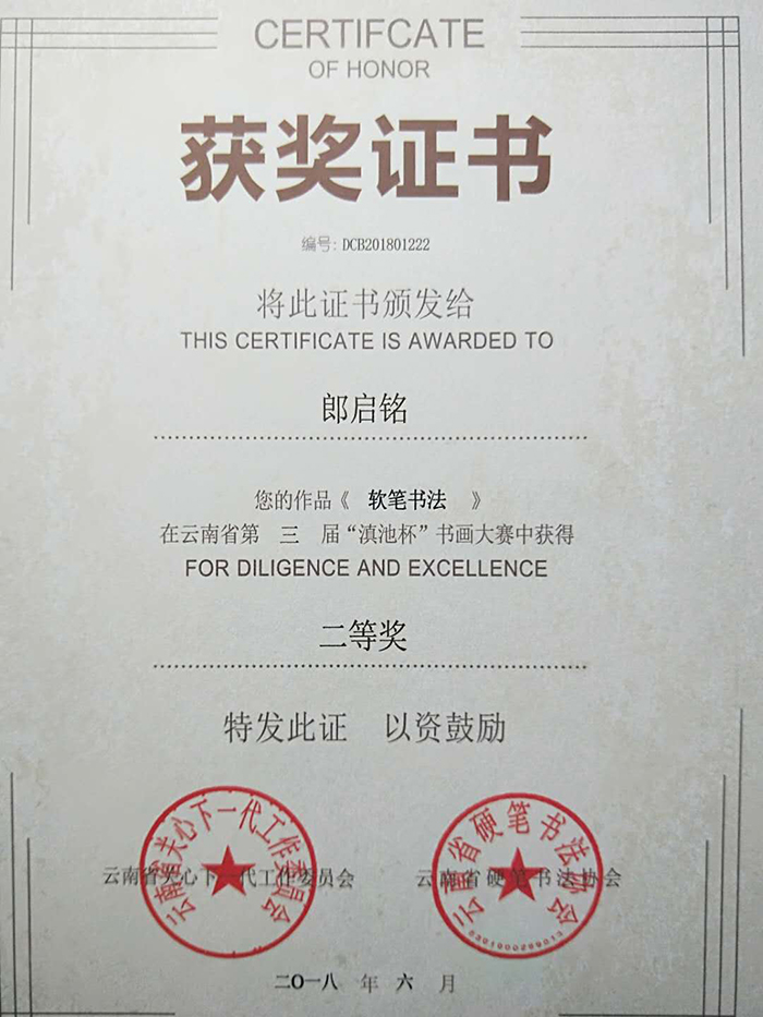 2018年6月,我校部分學生積極參加了由云南省關心下一代工作委員會組織的云南省第三屆“滇池杯”書畫大賽活動。