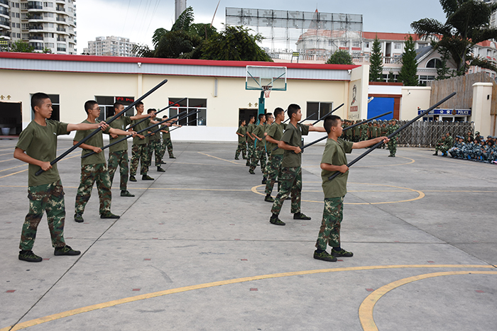 基本的隊(duì)列表演完畢后,女生方隊(duì)進(jìn)行了《女兵操》表演,鏗鏘亦溫柔,舉手投足間煥發(fā)出勃勃生機(jī),將會操表演推向了高潮。男生方隊(duì)也毫不遜色,擒敵拳、棍術(shù)更是勢如霹靂,強(qiáng)健的體魄展現(xiàn)出堅(jiān)定的意志,自律自強(qiáng)的品質(zhì)中綻放出青春的色彩,展現(xiàn)了當(dāng)代軍人的風(fēng)采。