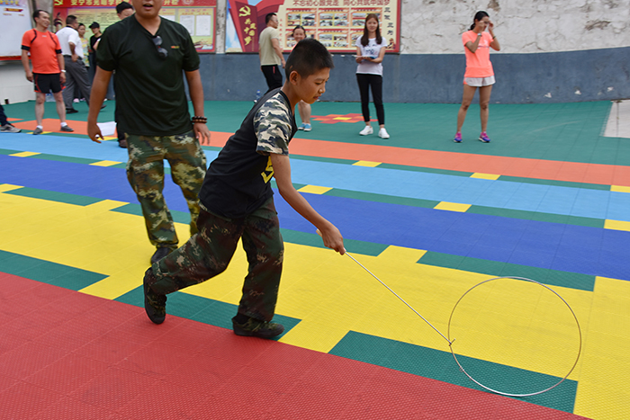 隨后進(jìn)行的是滾鐵環(huán)比賽。同學(xué)們從未接觸過這項(xiàng)運(yùn)動(dòng),但在老師簡單的教授之后,便很快學(xué)會(huì)。在比賽中,大家快速把鐵環(huán)推著往前跑,雖然中途有的鐵環(huán)偏離路線,有的總是滾不起來,但同學(xué)們 “不拋棄、不放棄”的精神感動(dòng)著場下觀眾,一陣陣加油聲、歡呼聲把比賽一次次推向高潮。最終男生隊(duì)獲得了第一名,女生隊(duì)獲得了第二名。