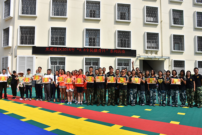 接下來的“呼啦圈過山車”、單人跳繩、雙人跳繩、集體跳大繩、拔河等項(xiàng)目,大家本著“友誼第一、比賽第二”的理念各自全力以赴、展現(xiàn)自我。整場比賽進(jìn)行有序,在陣陣吶喊助威聲中,經(jīng)過力量的碰撞與耐力的較量,各隊(duì)以飽滿的熱情展示了自己的風(fēng)采,也充分展示了體育健身的魅力。最后,光明社區(qū)領(lǐng)導(dǎo)為此次比賽活動(dòng)中各項(xiàng)目的獲獎(jiǎng)小組進(jìn)行了頒獎(jiǎng),并合影留念;顒(dòng)取得圓滿結(jié)束!