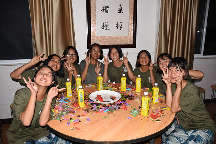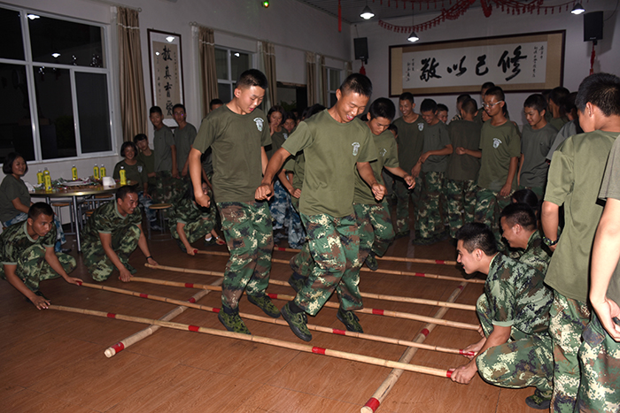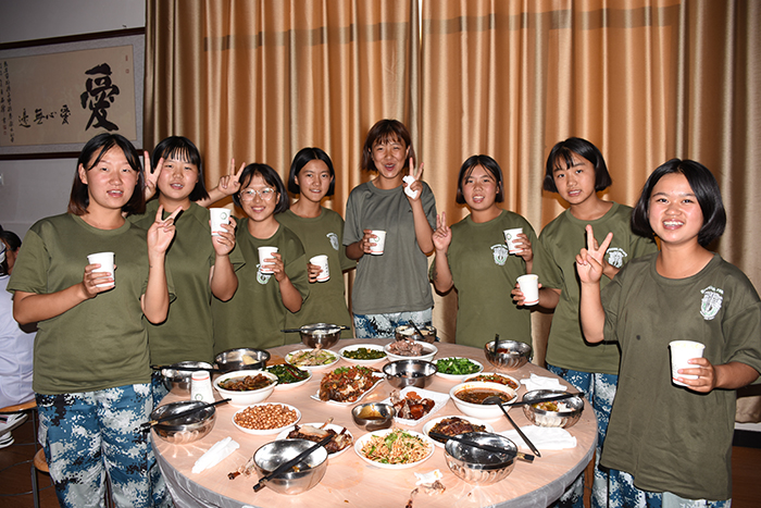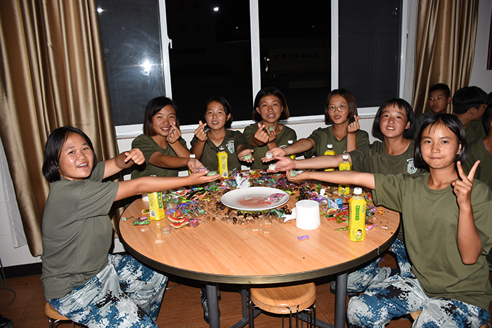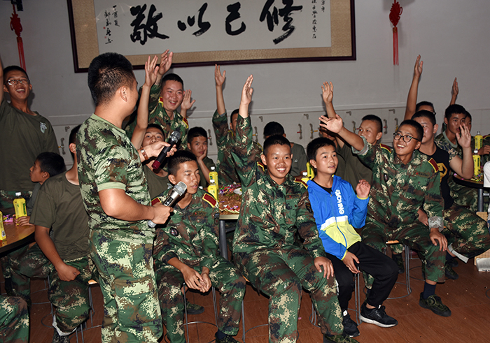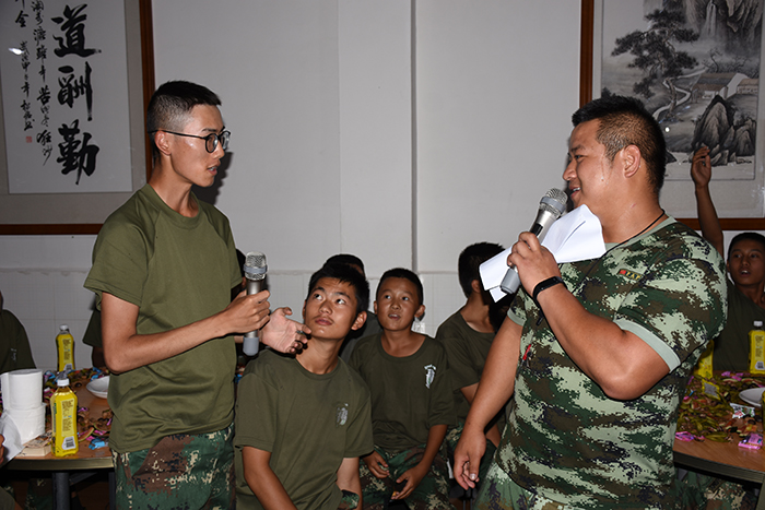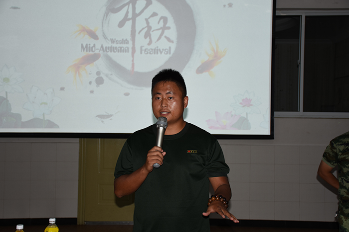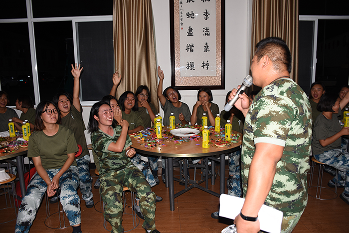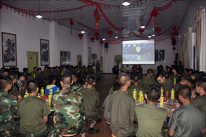其間,晚會(huì)的主持人(副總教官王濤)把有趣的“猜謎語(yǔ)”貫穿其中,大家爭(zhēng)前恐后舉手搶答,或討論、或冥思,就為猜出謎底那一刻的滿足,拿到獎(jiǎng)品的那份開心。整個(gè)晚會(huì),孩子們一邊吃著老師們精心在家樂(lè)福挑選的月餅、果汁、零食,一邊欣賞著精彩紛呈的節(jié)目,樂(lè)在其中,氣氛非常熱烈。