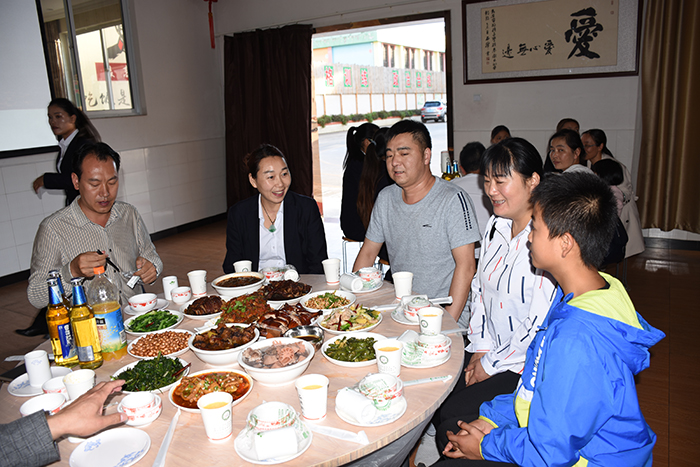隨后,在魯校長(zhǎng)一聲“開席”的令下,大家開心地一邊品嘗著佳肴,一邊舉杯相互表達(dá)節(jié)日的祝福,只聽見一浪高過(guò)一浪的“祝爸爸媽媽中秋節(jié)快樂(lè)”、“祝全體師生中秋節(jié)快樂(lè)”的祝福響徹餐廳。席間,魯校長(zhǎng)還帶領(lǐng)校領(lǐng)導(dǎo)親切地走到孩子們中間敬茶,和大家聊家常、話祝福。當(dāng)走到學(xué)校的兩個(gè)“小不點(diǎn)”身旁時(shí),魯校長(zhǎng)情不自禁地說(shuō)著“你們長(zhǎng)高了,也更懂事了”,還不時(shí)比劃著他們?nèi)胄R詠?lái)的身高差?粗虒W(xué)中嚴(yán)厲的校長(zhǎng),生活中卻是如此關(guān)切地噓寒問(wèn)暖、和藹可親,像父母,又像兄長(zhǎng),也像朋友,同學(xué)們頓時(shí)覺(jué)得非常溫暖。
