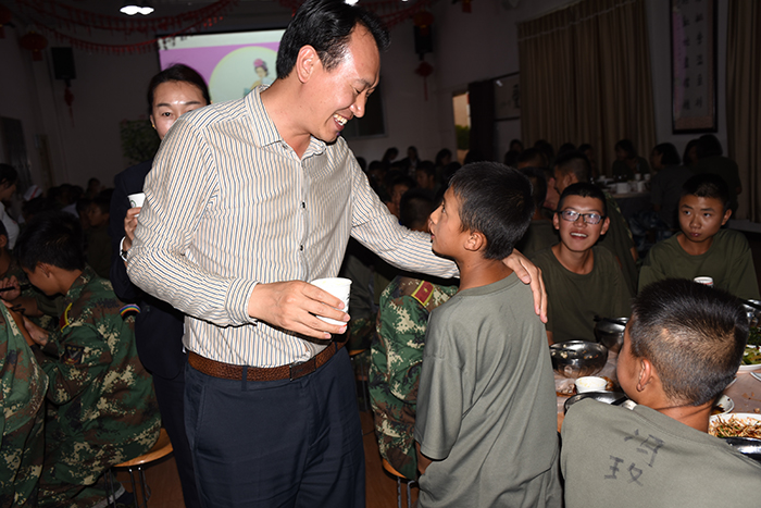 當(dāng)看著畢業(yè)生付迆勛和爸爸媽媽中秋前一天就回學(xué)?赐給同學(xué)們特地帶來(lái)月餅分享,和大家一起歡度中秋時(shí),魯校長(zhǎng)也頗有感觸地說(shuō)到:“很多個(gè)萬(wàn)家團(tuán)圓的節(jié)日,都有畢業(yè)生和家長(zhǎng)一起回來(lái)參加,說(shuō)明家長(zhǎng)對(duì)我們的工作是認(rèn)可的,同學(xué)對(duì)這里的情感是深厚的。我知道,大家在這里改變的時(shí)候無(wú)疑是很艱辛的,但蛻變以后的自己是欣喜的。所以希望同學(xué)們都能以付迆勛同學(xué)為榜樣,好好學(xué)習(xí),天天向上。你們畢業(yè)后,我也隨時(shí)歡迎你們;貋(lái)看看。”