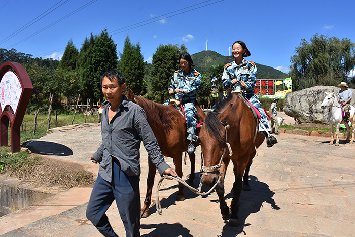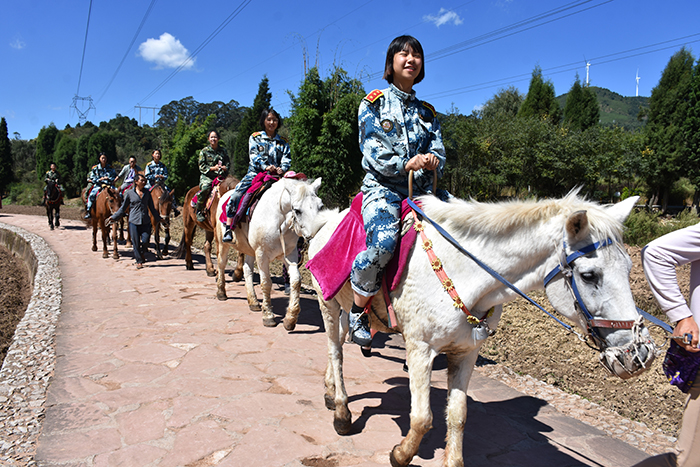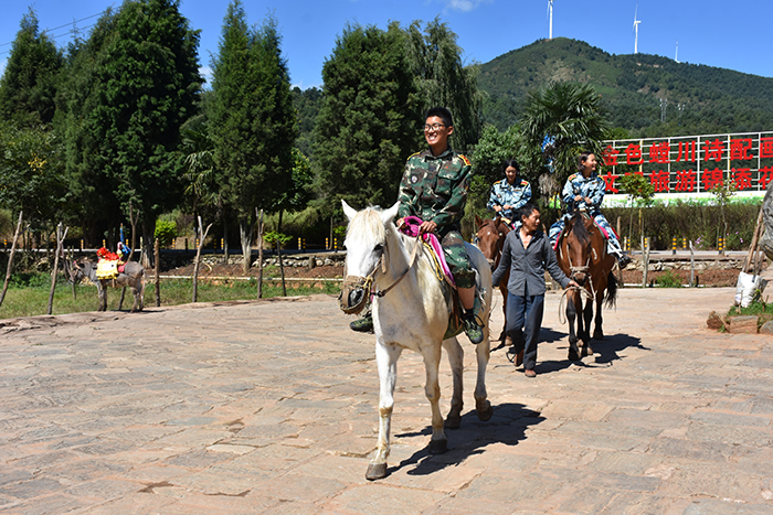 陽光剛好溫暖和煦,微風剛好清涼宜人。這個秋日,牧羊湖沒有初春時油菜花的心旌搖曳,也沒有盛夏時向日葵的熱鬧綻放,但僅憑一項騎馬,就讓每天生活在“鋼筋森林”中的孩子們魂牽夢繞。孩子們一路高歌和在農家樂、馬背上、卡丁車、螳螂川等留下的歡聲笑語,怡然自得的心情真是只有身臨其境才能真切體驗。