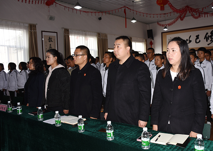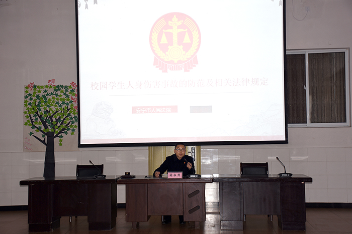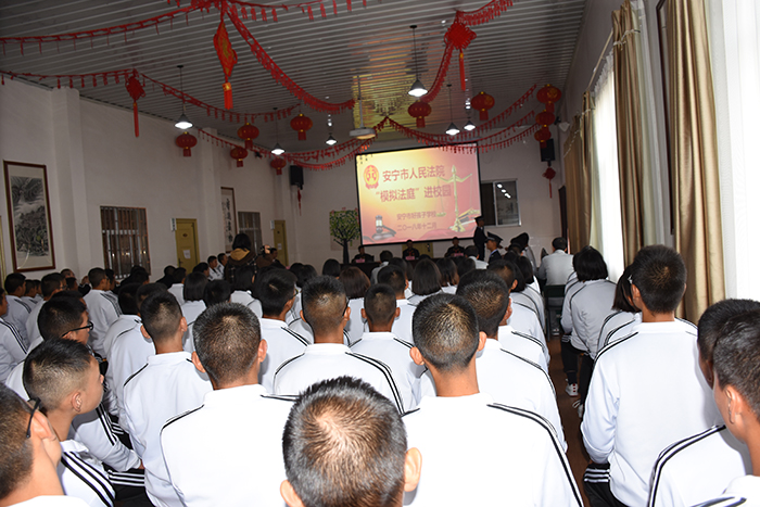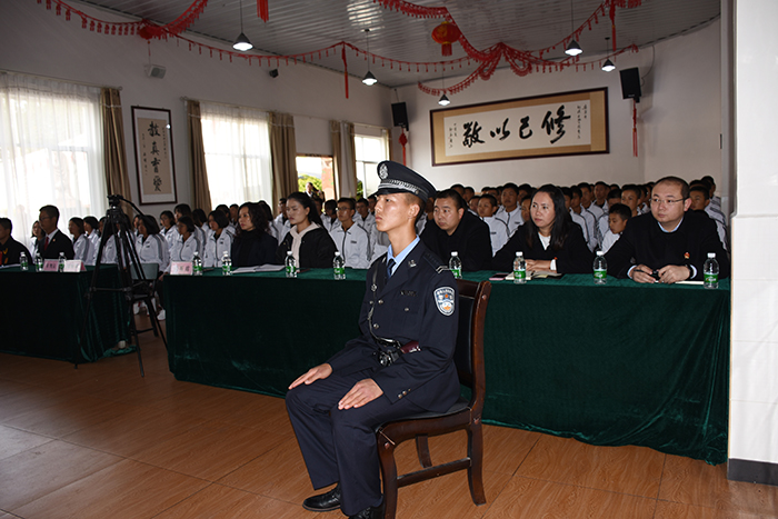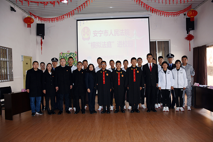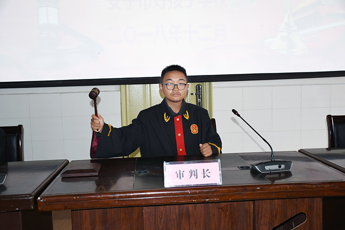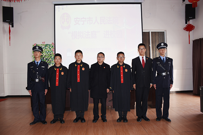 2018年12月15日上午,在安寧市人民法院道永升法官的指導(dǎo)下,在法院執(zhí)行局干警楊亮、劉沖、張杰芳的支持下,我校與安寧市人民法院聯(lián)合舉辦了“模擬法庭”進(jìn)校園庭審教育活動。