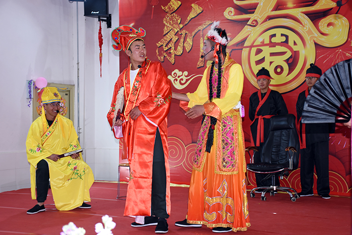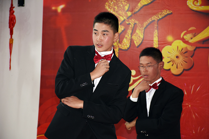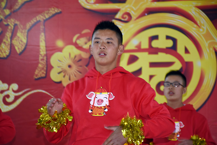 隨后,由學(xué)生王璐瑤、王佳曉和老師李月、王清恒主持的舞蹈、小品、朗誦、獨(dú)奏等14個(gè)精彩節(jié)目輪番登場(chǎng)。伴隨著一班、三班、十六班帶來(lái)的開場(chǎng)舞《恭喜發(fā)財(cái)》,晚會(huì)正式拉開帷幕,大家在熱情的旋律中開心地感受著濃郁的過(guò)年氛圍。