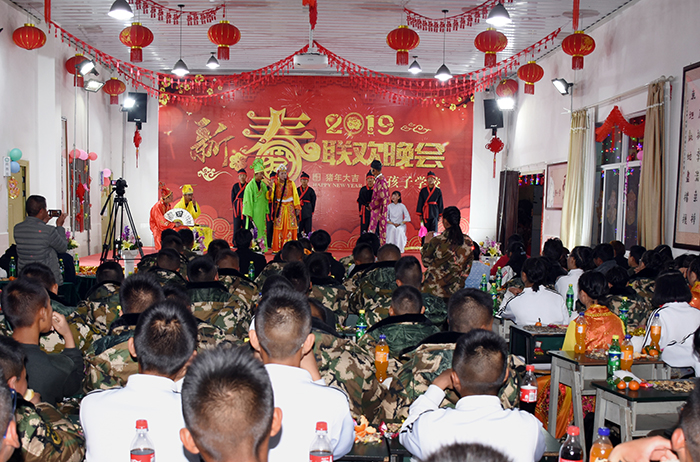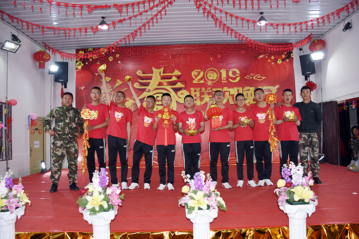 瑞犬凱歌辭舊歲,金豬送福迎新春。2019年2月5日(大年初一)晚,好孩子學(xué)校多功能廳成為了師生聯(lián)歡的舞臺(tái)、歡樂的海洋,我!2019年春節(jié)聯(lián)歡晚會(huì)”在這里隆重舉行。學(xué)校校長(zhǎng)魯植、副校長(zhǎng)兼總教官毛積敏、辦公室主任單官昱、總務(wù)主任李月、辦公室副主任施頻頁(yè)、副總教官王濤、張汝云等中層以上干部及老師參加了活動(dòng)。我校畢業(yè)生李哲、韓凈宇同學(xué)及其父親也出席了本次晚會(huì)。