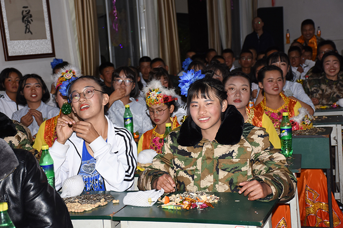 十二班表演的極具民族特色的彝族舞蹈《阿細(xì)跳月》,一出場(chǎng)就吸引了大家的眼球,一群彝族阿哥阿妹熱情似火地翩翩起舞,他們舞出了彝族人民的淳樸好客,更舞出了對(duì)美好生活的無(wú)限向往。