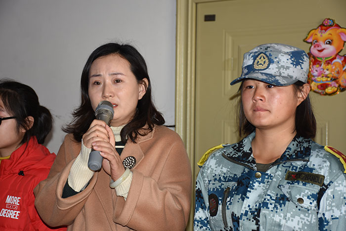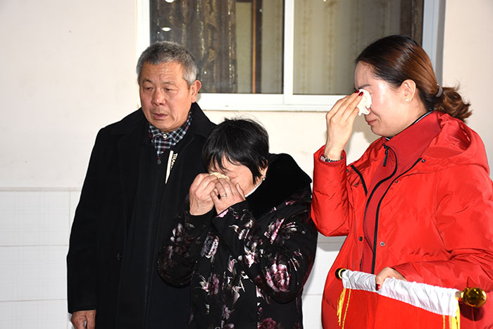 在溫情的音樂(lè)聲中,當(dāng)路航同學(xué)轉(zhuǎn)身看到一大家人站到自己的身后時(shí),立馬從隊(duì)列中飛奔到媽媽?xiě)牙铮е鴭寢尫怕暣罂。她沒(méi)想到那么多親人來(lái)接自己,就連年邁的姥姥、姥爺,還有年少的妹妹等不顧舟車(chē)勞頓,大老遠(yuǎn)趕來(lái)!在和親人的久違擁抱中,她的眼淚像斷了線的珠子一直不停地往下掉,一個(gè)勁地說(shuō)著“對(duì)不起,我錯(cuò)了,我好想你們!”全校師生都為之動(dòng)情,眼里都泛起了淚花!