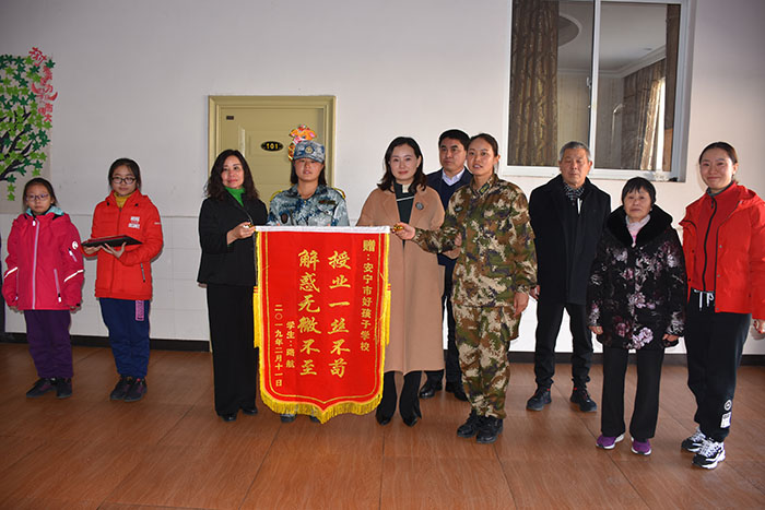 為表達(dá)學(xué)校及全體老師對(duì)孩子的培育之情,路航的媽媽特地將一面繡有“授業(yè)一絲不茍 解惑無(wú)微不至”字樣的錦旗贈(zèng)給學(xué)校,我校副校長(zhǎng)兼心理輔導(dǎo)首席專(zhuān)家周榕樺、班主任字貴芬老師代表學(xué)校接下了這面意義深刻的錦旗。