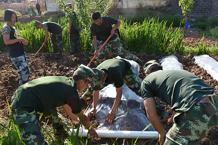 孩子們別提有多高興了,一個個連跑帶顛地離開學(xué)校來到菜地里,開心地干起活來。孩子們既有分工又合作,有的挖地、有的割草、有的摘豆、有的拔菜。等一切準(zhǔn)備就緒,就開始了全員種瓜,只見有的履溝、有的打塘、有的播種、有的澆水、有的蓋薄膜......個個充滿了干勁,忙碌著,商量著,菜園里頓時變得熱鬧起來,一幅緊鑼密鼓編織的春耕圖出現(xiàn)在大家眼前。