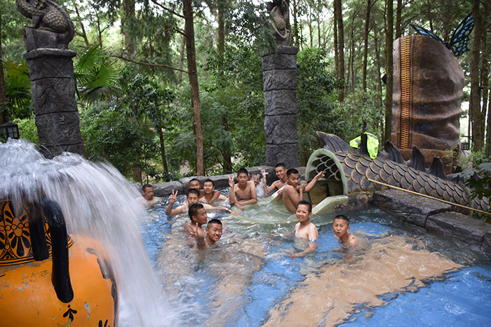 刺激項(xiàng)目體驗(yàn)結(jié)束后,差不多已是傍晚,孩子們成群結(jié)隊(duì)地到各種特色功能浴中一一享受。一入池中,大家便遙想起唐朝佳人楊貴妃溫湯美容的故事來(lái),更何況,溫泉中設(shè)有薄荷、牛奶、鮮花、檸檬等養(yǎng)顏潤(rùn)膚浴,這是對(duì)當(dāng)代人的恩寵,會(huì)令楊貴妃自嘆不如,去責(zé)怨唐玄宗白當(dāng)了一世皇帝,倒不如去做安寧的普通市民,可美美享受森林溫泉的美容浴。親親魚(yú)療池中,魚(yú)兒親密接觸腳掌的酥癢,讓孩子們不時(shí)咯咯地笑出聲來(lái),牛奶池、玫瑰池、中草藥池等池中,更是留下了孩子們無(wú)數(shù)的歡聲笑語(yǔ)......有的池子本來(lái)容納不下太多人,但孩子們就是喜歡擠在一起,嬉戲調(diào)侃,不時(shí)擺拍留影,讓隔著屏幕看照片的人,都能感受到這個(gè)大家庭別樣的溫暖。