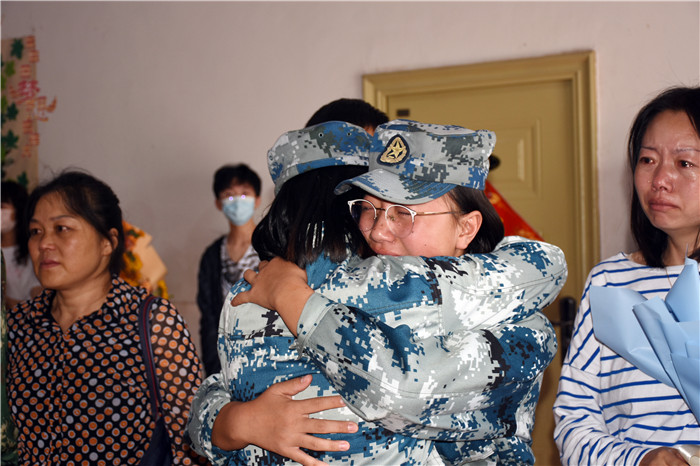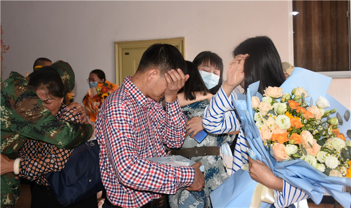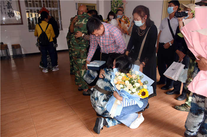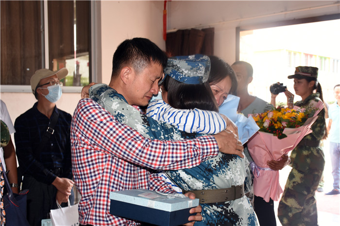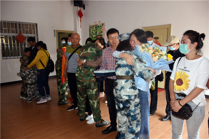 家長在老師的帶領(lǐng)下走進多媒體教室,隨著一聲“向后轉(zhuǎn)”的口令后,8位孩子飛一般地沖到父母面前,相擁而泣,哭成一片……這種感動的場面感染著在場的每一個人!