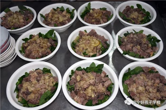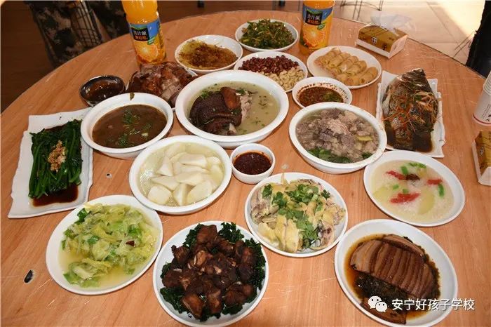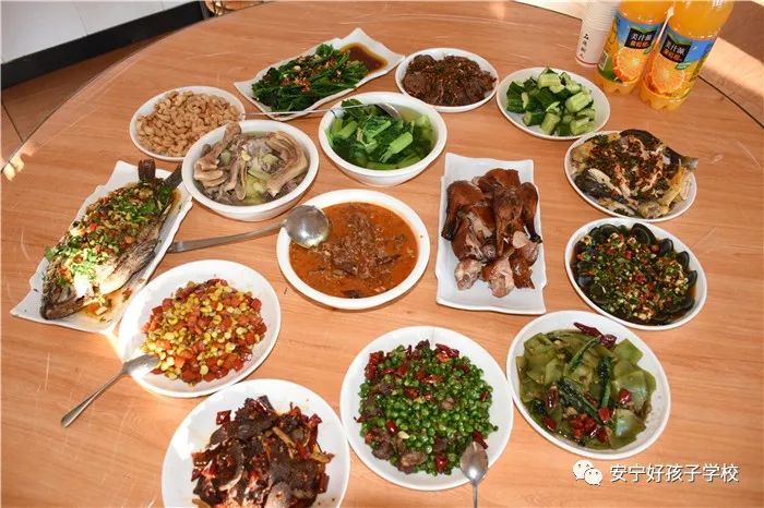 為了準備豐富的年夜飯,老師和同學(xué)們從上午就開始忙碌著,一起幫學(xué)校廚師們打下手。到了下午,一盤盤色香味俱全的菜肴就呈現(xiàn)在大家面前,伴隨著隆隆的鞭炮聲,年夜飯開始了。