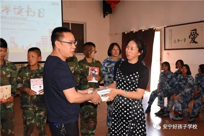 緊接著,社區(qū)李書(shū)記和我校尹斌校長(zhǎng)為上臺(tái)發(fā)言的同學(xué)頒發(fā)精美書(shū)籍作為獎(jiǎng)勵(lì),同學(xué)們?nèi)绔@珍寶,臉上綻開(kāi)了幸福的笑容。
