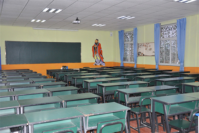學(xué)生在多媒體教室觀看建軍90周年閱兵式