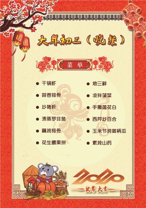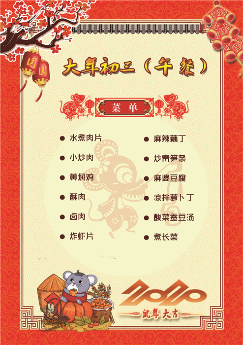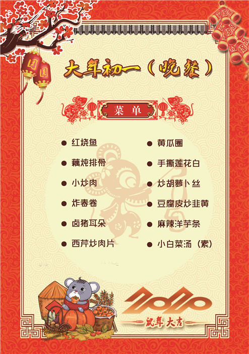 過年了 !孩子們吃什么?這是學(xué)校領(lǐng)導(dǎo)幾天來一直思考的問題。經(jīng)過與學(xué)校營養(yǎng)師、食堂廚師們多次商議后,本著營養(yǎng)、健康、不浪費(fèi),又要保證孩子每餐都能吃上新鮮可口的飯菜,終于議定了菜單,現(xiàn)予以公布。祝孩子們新年快樂!祝全體家長萬事如意!