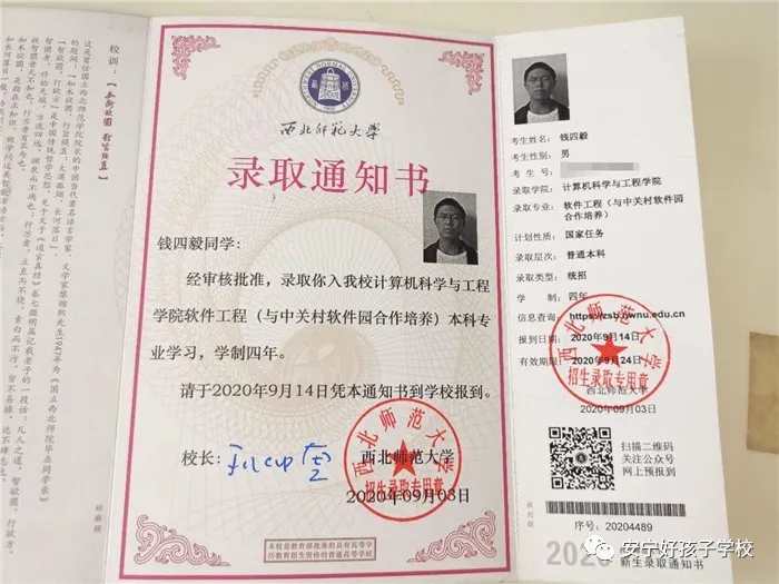 金榜題名傳佳訊,莘莘學子競風流 ——記好孩子學校優(yōu)秀畢業(yè)生錢四毅被西北師范大學錄取