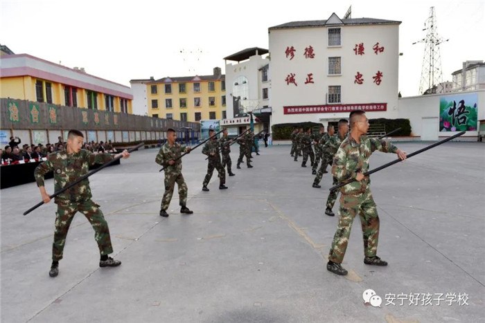 匯演尾聲,王理事長作了精彩點評:“今天我們來到好孩子學校進行調(diào)研,感受頗深。第一是熱情,此次調(diào)研不僅有我們省廳潘處長和市教體局劉副局長的一路陪伴,而且來到好孩子學校以后,學校的接待也很熱情,讓我們感受到了春城人民的淳樸好客!第二是贊嘆,好孩子學校辦學規(guī)范、理念獨特、措施有力、氛圍濃厚、成效明顯,校園干凈整潔,師生精神風貌良好,人文關(guān)懷做得也很好,是個既嚴厲又溫暖的育人之地,給我們留下了非常好的印象。第三是驚訝,學校短短十年間,就改變了數(shù)千名孩子,真的讓我們非常驚訝。我不禁想起教育的一句話‘教育的特殊性,是為了人的成長來服務,是一個生命影響一個生命的過程!煤⒆訉W校緊緊抓住做教育的這個真諦,嚴格訓練、嚴格管理、嚴格要求,從心理學角度,認真分析問題成因;從好習慣入手,狠抓良好習慣的養(yǎng)成教育?梢娫谂囵B(yǎng)孩子行為習慣、心理健康上下了大功夫,才能使那么多孩子回到了正常的主流生活中,你們?yōu)楫數(shù)厣鐣C合治理做出了很大貢獻。今天孩子們的表演也非常精彩,足以看出日常的訓練有多么規(guī)范,也可見學校是多么注重孩子們的興趣培養(yǎng)與激發(fā)?傊,不枉此行!”