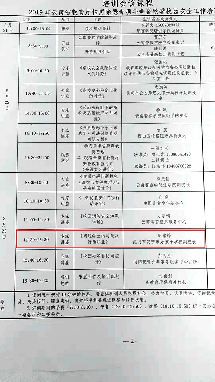 2019年8月22日—23日,云南省教育系統(tǒng)掃黑除惡專項(xiàng)斗爭(zhēng)暨秋季校園安全培訓(xùn)工作會(huì)議在云南警官學(xué)院隆重召開(kāi),我校受省教育廳的邀請(qǐng)參加了本次會(huì)議。